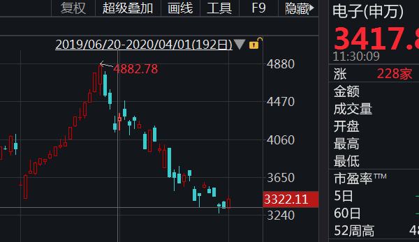早盘上证指数小幅上涨0.3%,创业板指数上涨0.89%。28个申万一级行业中23个行业指数飘红,电子行业以3.14%的涨幅领跑两市,华天科技、斯达半岛、通富微电等个股强势涨停。沉寂了一个多月后,科技股终于在二季度首个交易日迎来强势反弹。