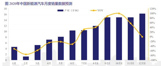 兴业证券表示,全球汽车电动化时代已经到来,预计到2025年新能源汽车产销达到1250万辆,渗透率为15%。预计2020年国内新能源汽车总产销有望达到120万辆。其中,9月、10月迎接金九银十,同比增速有望超过80%,为本年高峰值。产销绝对值高峰预计在12月份, 约16万辆,跟去年同比持平。