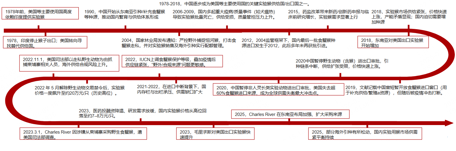 图:中国与全球实验猴用猴大事记时间线梳理 |