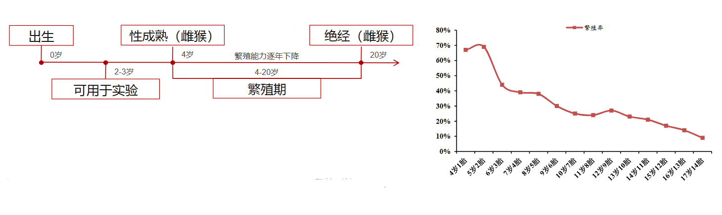2.1、供给核心矛盾①:食蟹猴繁育周期长,国内种群老龄化严重