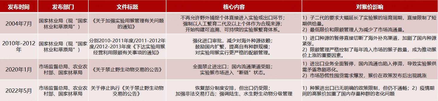 表:国内实验猴进出口相关政策梳理 |