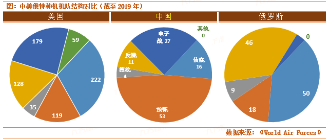 对标海外,国内特种机仍有很大的市场空间。从数量结构来看,解放军强项明显,但偏科也同样明显。目前解放军的预警机装备数量已经接近美军的一半、超过美俄平均水平,数量上基本符合地区战略背景需求。不过在绝对数量上仍明显偏低;其余集机种更不遑多论。近年来国内特种机装备发展的首要核心基本上就是预警机,其他机种近年来的发展重点更倾向于放量补短板之前必须实现的突破。