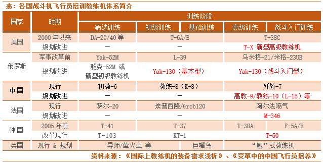 优秀的教练机装备是大国空军关注的首要基础设施。数据显示,俄罗斯在近五年军费支出逐年递减的情况下依然实现了教练机机队34.35%的累计增幅;与此同时,美军包括战斗机在内的所有机队近五年来全部都在精简缩编,只有教练机机队的规模持续逆势增长。放眼全球,专业教练机的性能要求越来越高,发展能够同时满足多阶段训练需求的高性能高级教练机已经成为时代主流。