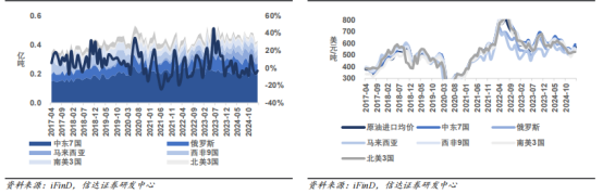 图表4:中国原油进口量(左)中国原油进口均价(右)