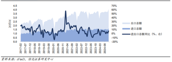 A)进出口总额:2025年1~2月,全国进出口总额实现6.54万亿元,同比下滑1.2%。其中,机电产品进口总额实现1万亿元,同比增长3.2%,机电产品出口总额实现2.33万亿元,同比增长5.4%。