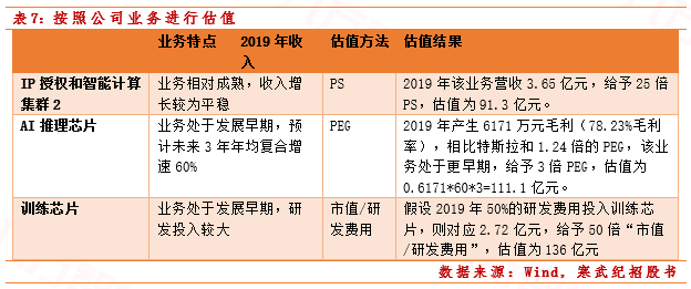 对比海外AI芯片龙头英伟达,目前英伟达市值15333亿,2019年研发支出为195亿,市值/研发支出为79倍,则寒武纪的估值为430亿。