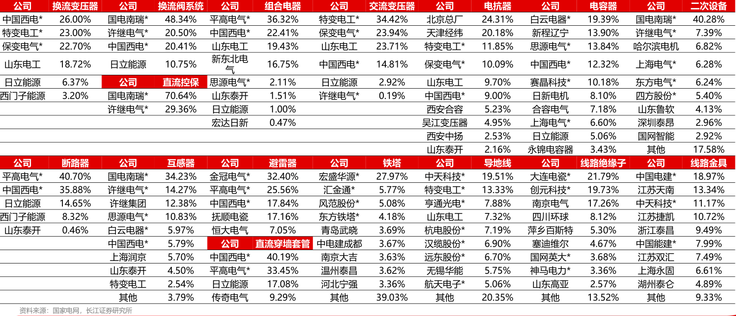 更长期维度看,在新型电力系统建设大背景下,风光大基地的外送需求强烈,特高压为电网领域长周期景气方向,“十五五”期间特高压有望保持每年开工4直2交的高投资强度,基于市场格局集中度较高,看好头部企业订单放量。