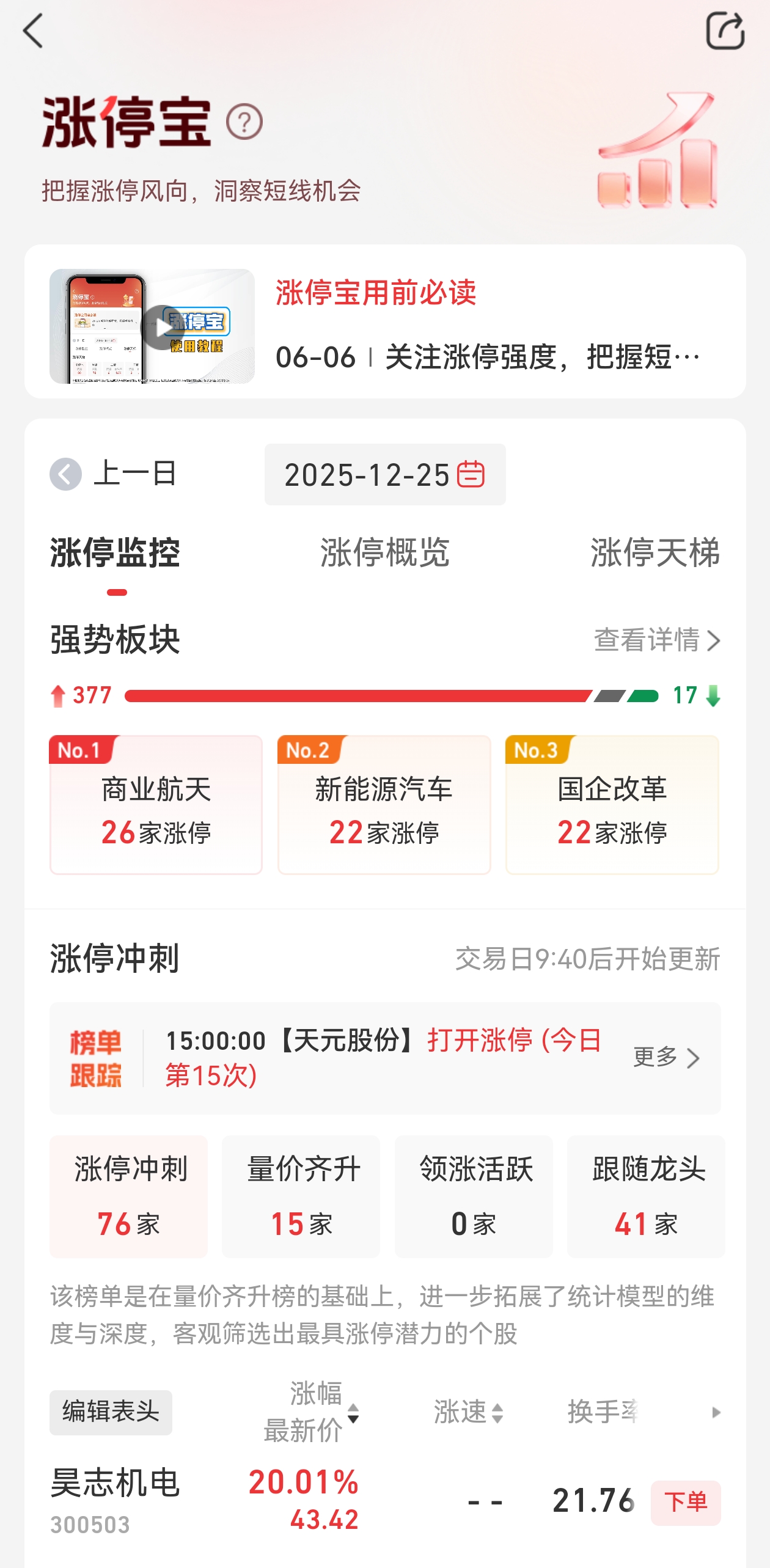 商业航天强上加强大超预期!这两只商业航天概念股的异动公告对后续走势有何影响?点击此处解锁涨停宝——你的涨停研究助手,研判涨停逻辑,辨析涨停地位,点击查看详情>>