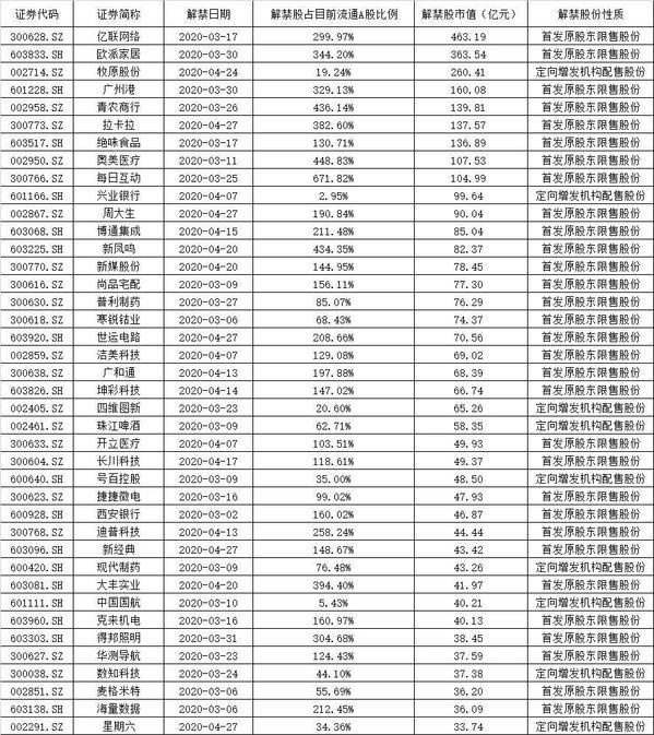 2月28日,安靠智电有1526万股限售股解禁,占解禁前流通A股的比例为45%。3月份,还有大量限售股解禁,解禁市值将超5000亿元(按2月26日收盘价计算),且其中不少解禁股占解禁前流通A股股本较高,值得注意。
