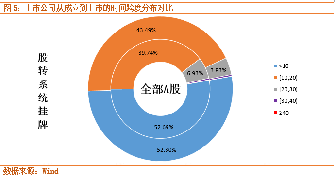 可以说,在成立到上市的时间跨度上,新三板的总体数据表现与A股主板基本一致。