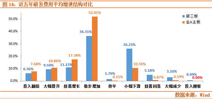 此外,在研发投入方面,新三板挂牌公司的投入表现明显不及主板企业。