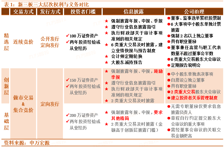 一直以来,新三板挂牌公司的分层问题是制约板块发展提升的一个重要原因。一方面,新三板公司数量众多,同时企业体量普遍偏小、相互之间差异巨大,以至于新三板标的往往良莠不齐,对于专业知识与技能相对有限的投资者很不友好。另一方面,板块分层标准难以界定,既能预防操纵又能实现差异化服务的普遍平衡点较难把握,挂牌企业的权利与义务长期并不匹配。