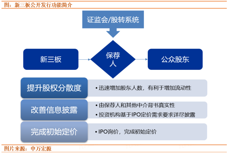 就发行制度而言,本次新三板改革的亮点在于,在改革定向发行限制的同时,尝试引入公开发行制度实现“小IPO”。在定向发行方面,新三板解除了35人定增限制,并且允许企业“自办发行”,缩短定增时间并降低定增成本。同时,在公开发行方面,精选层将允许符合条件的挂牌满一年的创新层企业升层并向合格投资人公开发行。考虑到公开放行在资金募集效率、股权分散配置、信息披露改善与初始定价等方面的优势,新三板精选层引入公开发行的尝试大概率有助于提升未来板块交易活跃度。