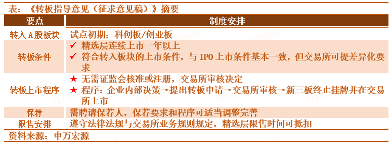 因此,随着转板制度的未来落地,新三板精选层标的有望在A股市场中找到估值锚标的,板块交易活跃度有望大概率获得提升。