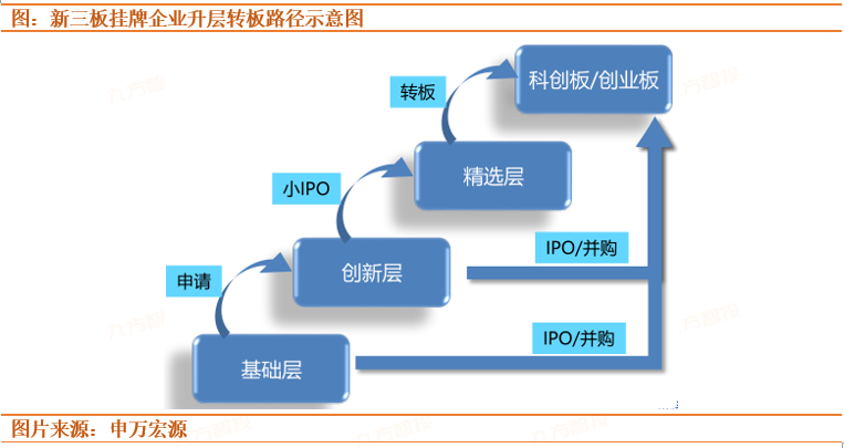 在升层上市的角度上看,高科技企业通过新三板逐步发展壮大实现主板上市的路径清晰且明确。得益于此,就新三板而言,在优势赛道上具备突出核心竞争力的挂牌企业的长期价值成长空间天花板有望移除,相关标的的估值提升空间料将十分可观。与此同时,配合新三板升/退层制度以及注册制改革,国内上市公司的退市流程有望进一步完善,核心优势退化的上市企业或将被更加精准地重新定位,精准分层的新三板为仍具备投资价值的主板退市企业提供一个资本市场中容身翻盘的机会。