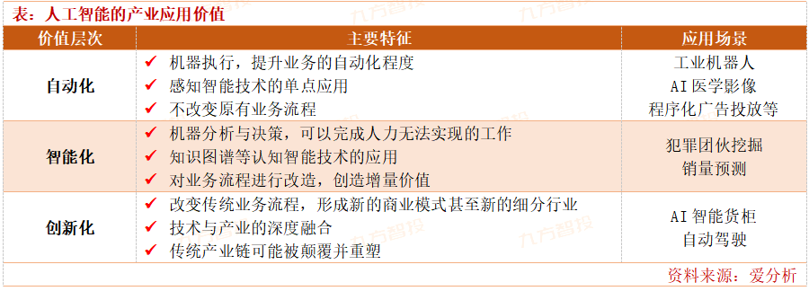 就产业应用而言,人工智能落地所创造的价值主要体现在三个层面上。