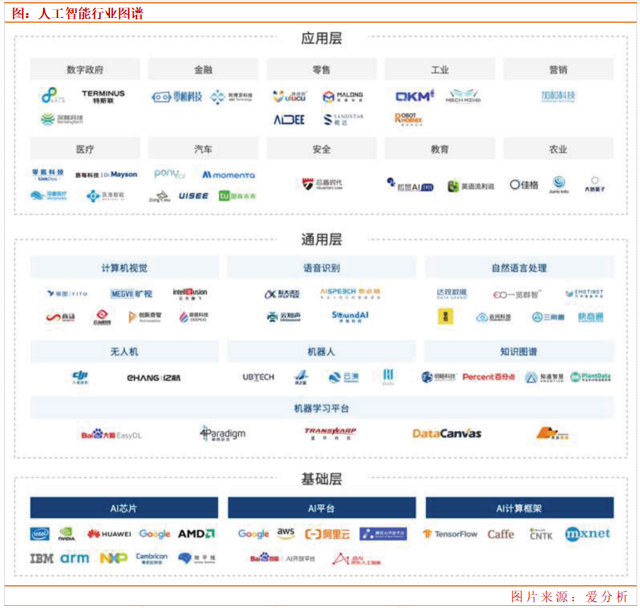 从行业应用角度来看,人工智能产业大致可分为基础层、技术层和应用层三大部分。