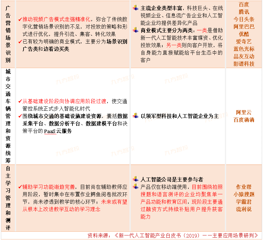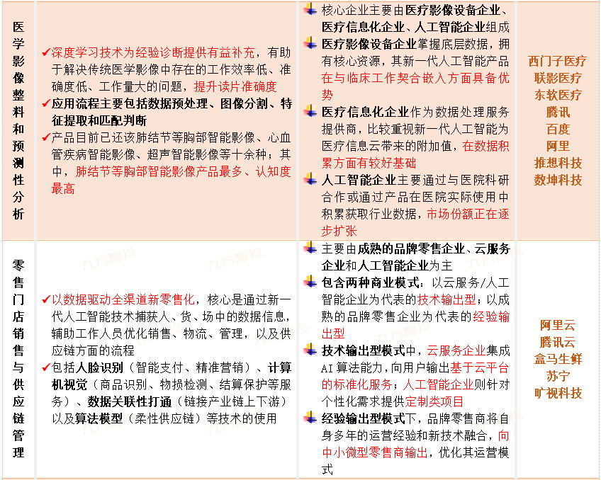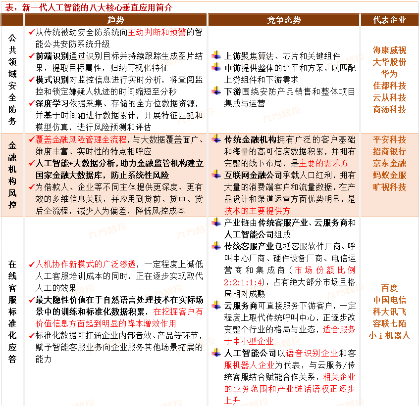 最后,应用层的核心则是探索AI通用技术与各行业应用的深度融合,参与者主要以垂直行业的人工智能应用公司为主。