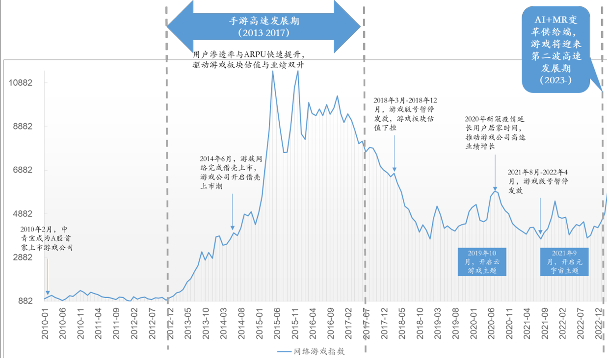 复盘A股游戏板块过去十年的走势,大致经历一轮长牛行情: