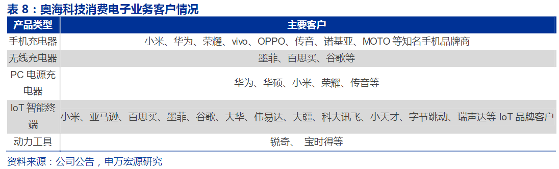 公司充电器产品应用领域拓展到智能家居、可穿戴设备等物联网领域,与Amazon(亚马逊)、Google(谷歌)、华硕、腾讯、百度、大疆、360、普联(TP-LINK)、公牛等行业知名企业建立了合作关系。