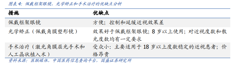 为了实现近视率的降低,加强使用近视防控手段和产品势在必行。根据《儿童青少年近视防控适宜技术指南》,遵医嘱佩戴框架眼镜、使用低浓度阿托品或者佩戴角膜塑形镜(OK镜),预计这些有效的防控手段将会成为未来近视防控的“大需求”,发展潜力巨大。