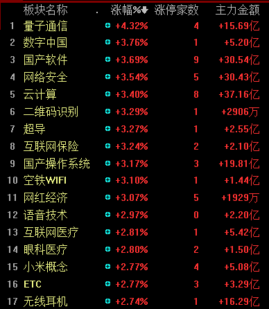 美伊局势似乎看到曙光,全球市场再度回暖。科技股又一次迎来大涨行情,引领股指走强,截至收盘,计算机、通信指数大涨逾3%,占据行业涨幅榜前两名,电子指数涨近2.5%,位列涨幅榜第四位。三大科技行业贡献了20多只涨停股,占两市涨停股数近三成。