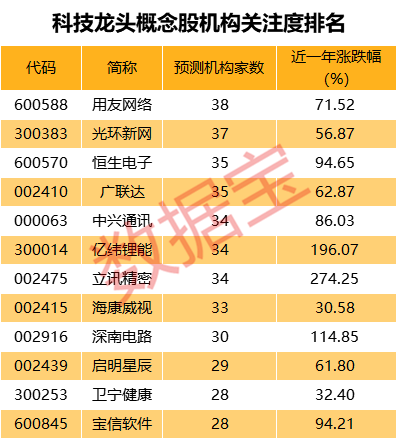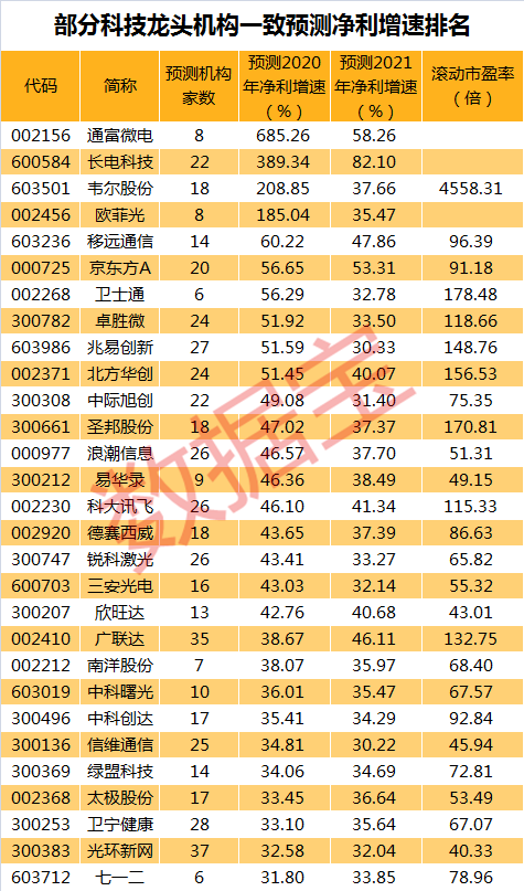 机构预测未来业绩高增长科技龙头名单