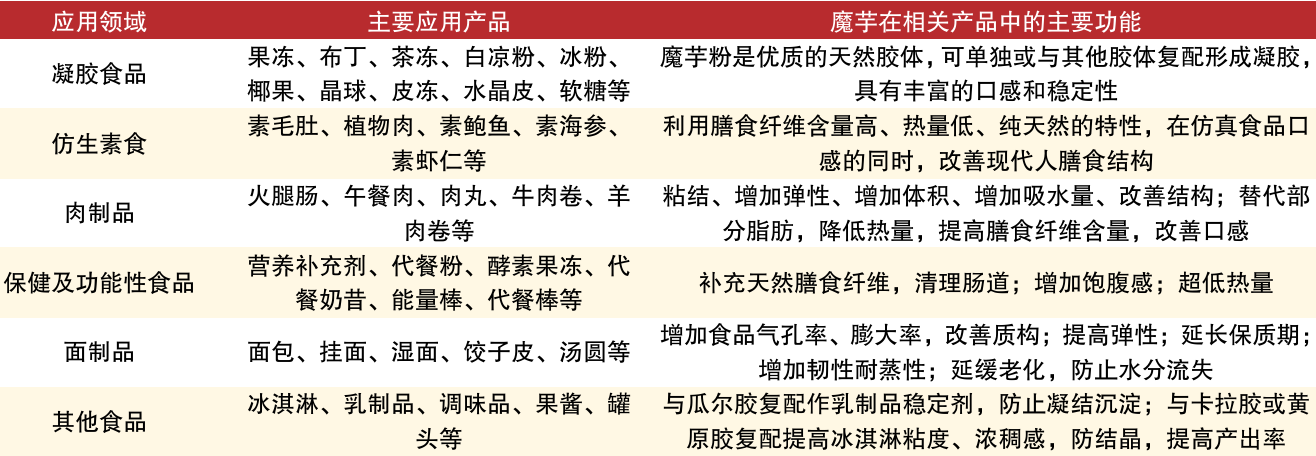 图:魔芋在食品制造业的主要应用领域 |