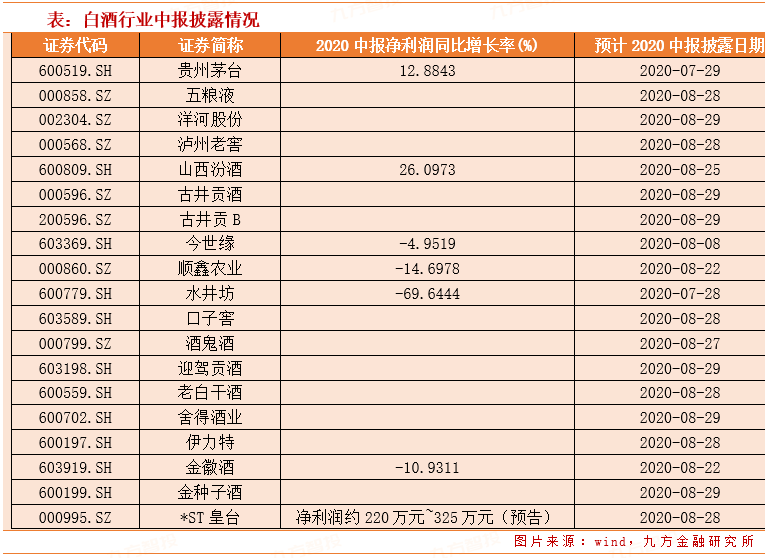 从报表端来看,上半年在疫情影响及酒企主动去库存之下,白酒板块整体业绩处在较低的水平,存在改善预期。截至2020年8月23日,茅台2021年PE为37x,五粮液为34x,其他酒企普遍在30x以下。