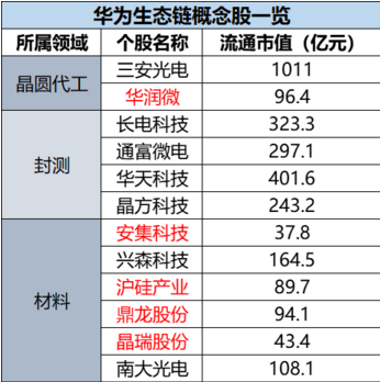 国盛证券表示,可以关注两大方向机会:1)华为配套服务产业链,包括代工、封测、设备、材料的国产化机遇;2)华为生态链相关企业,包括光学芯片、存储、模拟、射频、功率、FPGA、处理器及IP等产业机会。