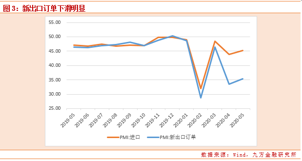 如果说现在经济面临的最大问题是什么,我们认为就是此前担心的外需大幅下滑,最后你生产的商品,尤其是之前就面向海外市场的这部分生产,就会因为外需的大幅下滑而收缩,5月份生产小幅收缩可能就侧面印证了该推测。而且图3直接拿进口和出口对比的话,可以发现出口的下滑速度明显快于进口,这也能很好的解释“外需大幅下滑”的判断。