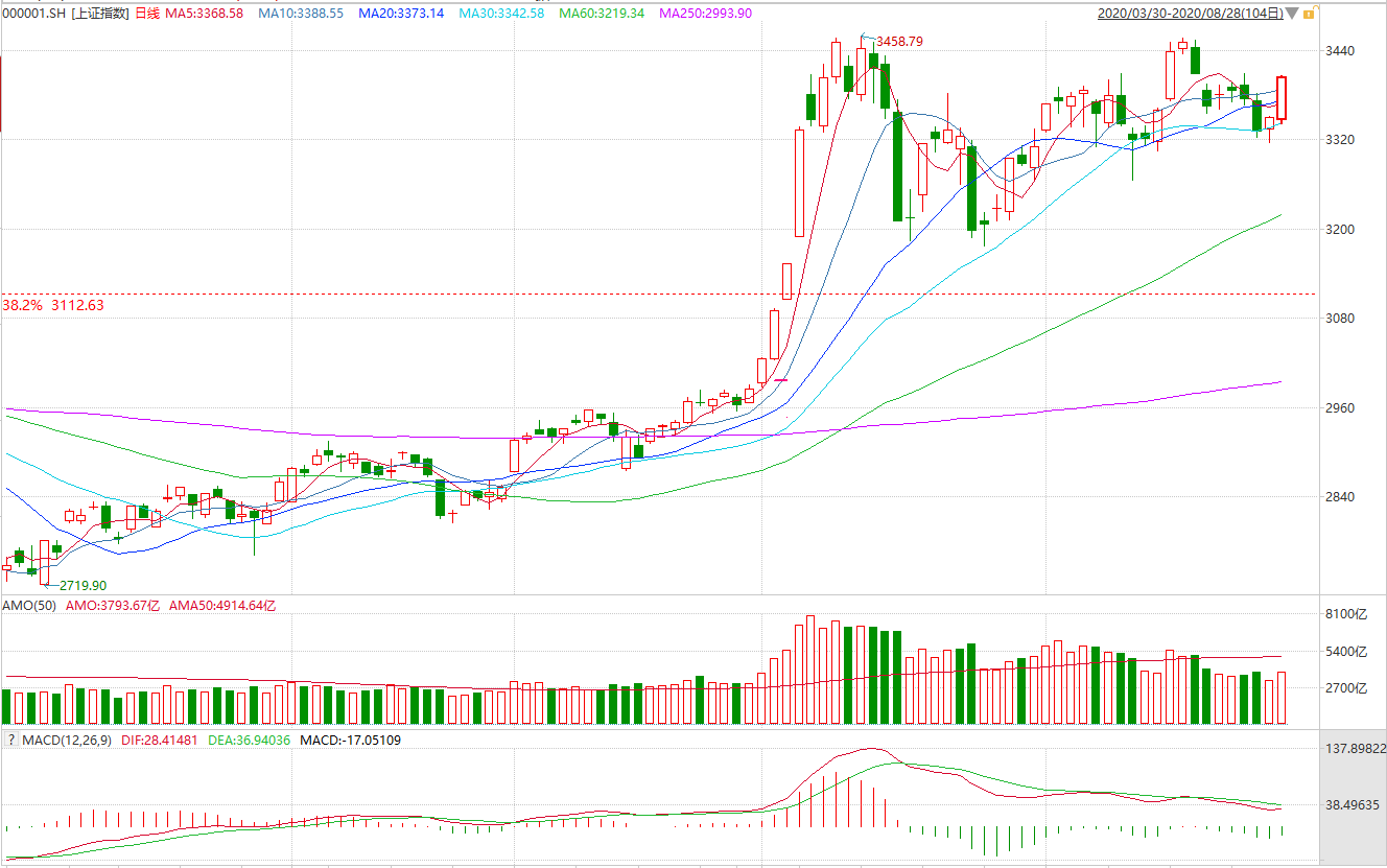 今天,大盘重新站上3400点,权重题材共舞之下,展开了一波不错的反弹,迎来久违的一根中阳线。