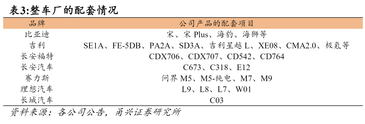 理想汽车:公司深度绑定,是其核心供应商,单车价值量高。