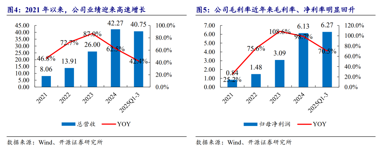 汽车结构件领域新星,业绩高增。公司成立于2004年,总部位于江苏省昆山市,以模具起家逐步拓展至冲压、压铸领域。公司总营收从2021年的8亿元增长至2024年的42亿元,实现高速增长,同时盈利能力稳步提升,未来有望跻身国内领军汽车结构件企业。