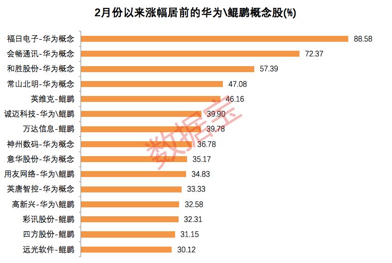 华为、鲲鹏概念股2月份以来近七成跑赢大盘