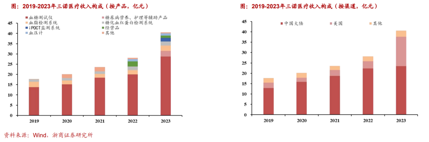 依托海外子公司Trividia深耕北美市场、协同销售、整合海外营销网络,使美国成为公司最重要的海外市场。2023年,公司进一步实现了对Trividia的控股并表,推动“OneSinocare”共识以实现更有效的协同,当年在美国实现收入14.18亿元,占公司营业收入比重达34.94%。