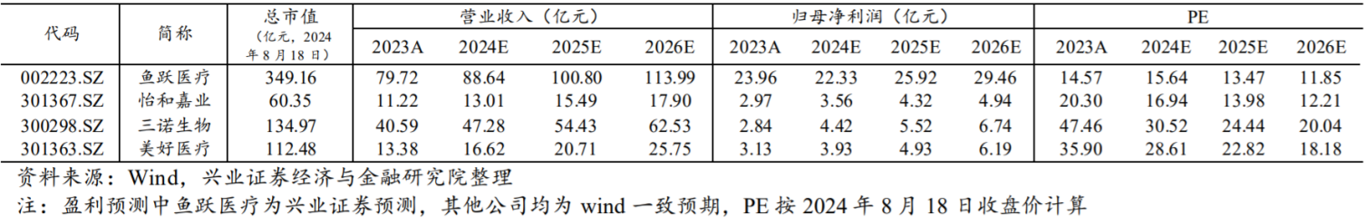 具有先发优势、已在海外形成渠道基础、产品力优质的家用器械公司:鱼跃医疗、怡和嘉业、三诺生物、美好医疗、九安医疗等。
