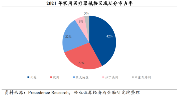 受益于医保支付,北美家用医疗器械市场发展较为成熟,2021年北美占全球家用医疗器械总收入的42%;亚太地区具有潜力,预计2023年至2032年复合增速有望超8%。