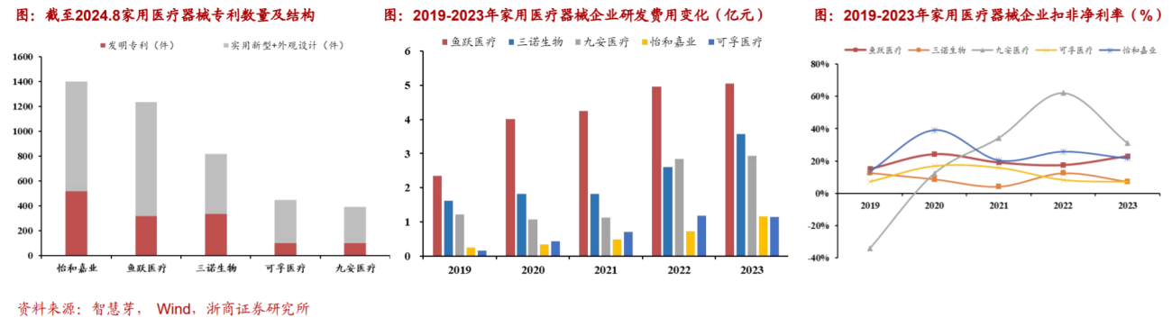 1)在产品上,我国家用医疗器械厂商具备符合质量要求的产品能力,并且持续创新研发,对专利技术的重视度持续提升;
