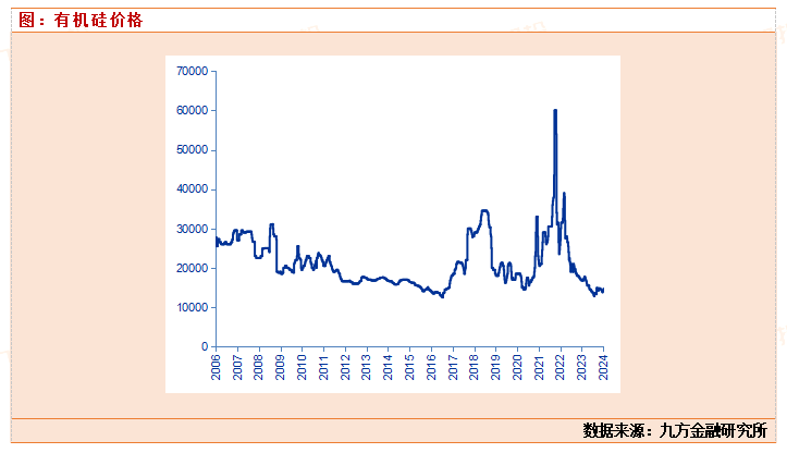 最近有机硅板块上涨,我们认为上涨不具备持续性,有机硅的价格景气度依旧是底部运行为主,板块还是以超跌反弹行情为主。上涨的主要原因还是因为有机硅板块长期下跌较多,普遍下跌超50%以上,有的标的下跌超80%。目前市场风格偏好超跌风格,叠加板块有些边际利好,板块短期会有一定程度反弹。有机硅行业最近的边际变化是,因为行业扩产太严重,有机硅企业大多亏损经营,现在西南硅厂停产规模扩大,北方大厂生产平稳,新疆硅厂增加开炉,但部分小厂受环保管控及停电影响,计划保温停炉。造成短期短期硅价坚挺,截止2024年1月17号,有机硅价格14700元/吨,相对于去年12月8号的14200元/吨,有500元/吨的涨价。