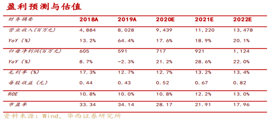 华西证券预计公司2020-2022年可实现营业收入94.39/112.2/134.78亿元,实现归母净利润7.19/9.21/11.24亿元,给予“买入”评级。