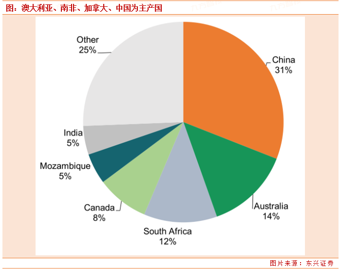 供给格局上来看,全球钛铁矿原矿资源主要集中在澳大利亚、中国、印度、南非和肯尼亚,合计占全球储量的77.50%,其中中国钛资源储量占全球储量的26.14%。2018年南非、澳大利亚、中国、莫桑比克、加拿大作为全球钛原料产品的主要供应国家,合计钛原料产量约占全球总产量的70%,中国的钛原料产品(主要为钛精矿)产量占全球总产量的31%。