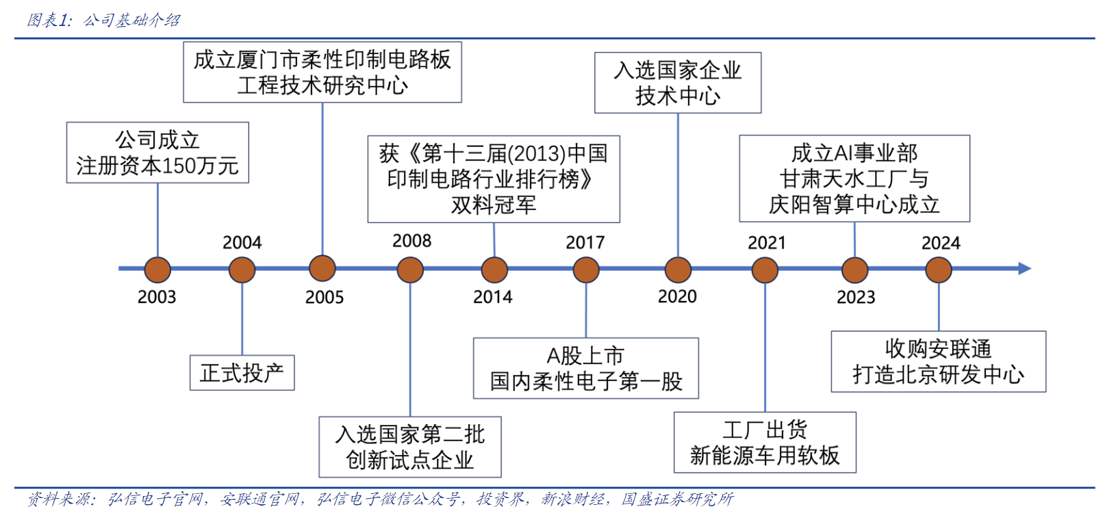 1)弘信电子成立于2003年,是中国领先的柔性印刷电路板(FPC)制造商,专业从事FPC研发、设计、制造和销售,凭借自身研发技术、产品质量、供货效率等优势,与众多知名电子产品制造商搭建了稳定的合作关系。2023年公司开始布局AI算力服务器的研发、设计、制造和销售,AI算力租赁业务等,与甘肃庆阳、天水政府合作打造“东数西算”算力系统平台,新增三家子公司燧弘人工、燧弘绿色、燧弘华创,提供服务器建设、算力租赁、算力技术维保等综合服务。