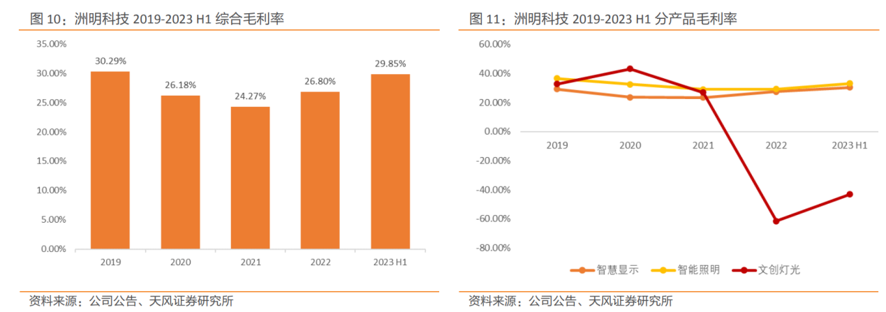 2) 文创灯光业务方面,该业务以配合公司光显一体化解决方案的需要为主。受到政策和特殊环境影响,在 2020-2022 年期间城市亮化需求大幅下降,因此收入和毛利有所下降。随着特殊环境影响结束,加之 2023 年“两会”后,稳增长、扩内需、促消费的政策取向摆在优先位置,将促进文旅夜游行业的发展随着外部环境逐渐向好,我们看好该业务发展。