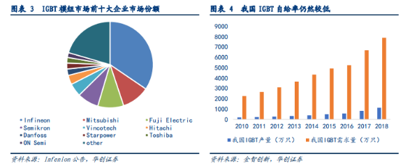 资料显示,纯电动车一般需要500个IGBT模块,其成本占整个控制器成本的40-50%,占新能源整车成本的10%。