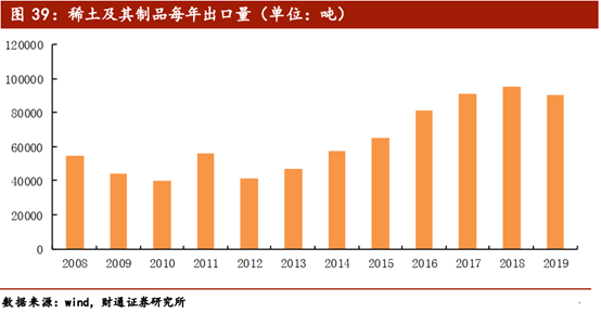 稀土行业作为电子、高端制造业不可或缺的“工业味精”,客观来讲,国内资源丰富,冶炼产能尽在国内,每年出口量占据全球绝对供应优势。在反反复复的中美贸易摩擦中,每每中美关系紧张,贸易形势恶化之时,稀土板块的反制逻辑深受市场认可。