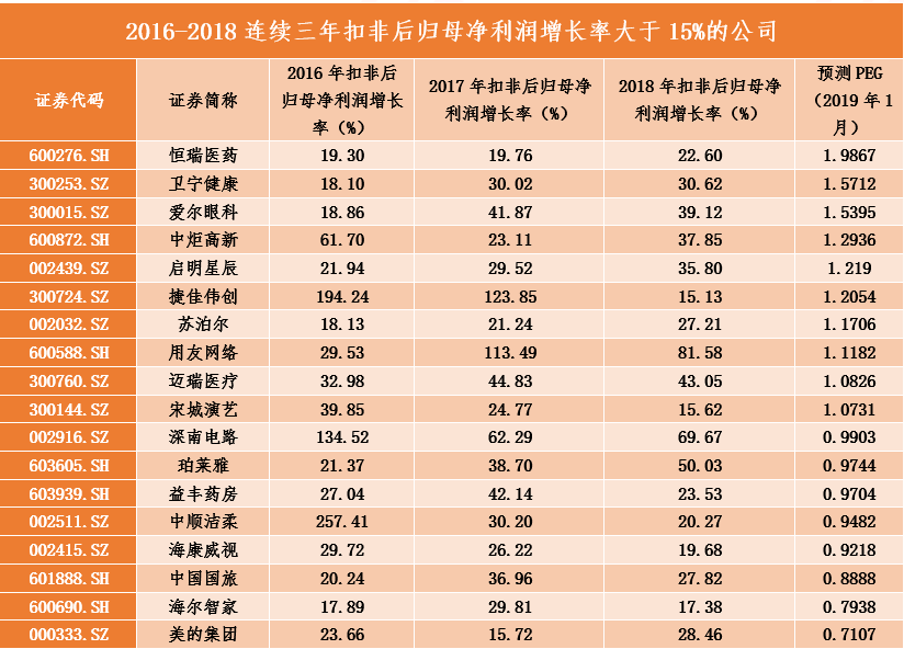1、PEG选股:强劲的增长历史,和可以预测的高成长,以及低于1的PEG