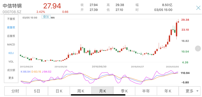 3月5日晚间,中信特钢(000708)发布年报,2019年全年实现净利润53.86亿元,同比增长50.45%,生产经营业绩在逆势中创造了历史最好水平。公司同时发布了拟10股转7股派10元的分配预案。