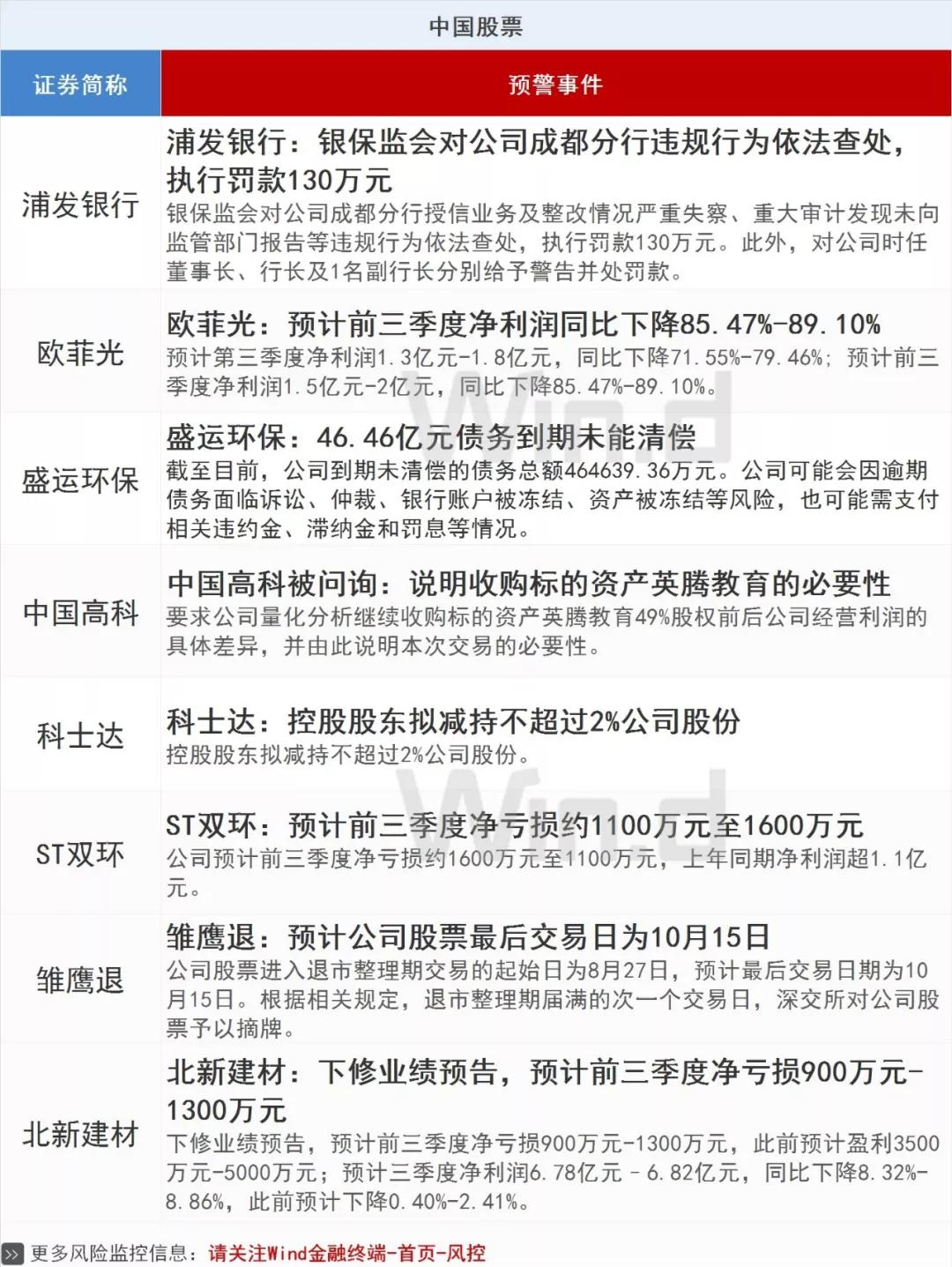 每日投资预警 | 欧菲光三季度利润下降85%以上!
