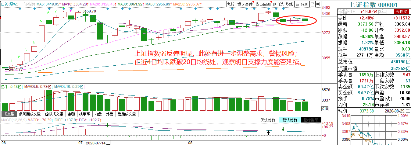 上证指数近几日走出明显的弱反弹行情,并未作进一步的调整,20日均线处当前展现出了一定强力的支撑,明日大概率做出方向选择。若破位需警惕短期风险。